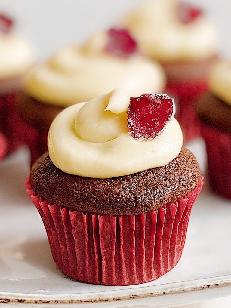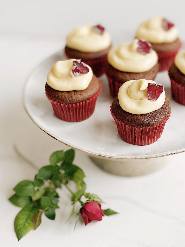 Dan žena je mednarodni praznik žensk, ki ga vsako leto 8. marca praznujejo v približno 100 državah po svetu. Je dan praznovanja ekonomske, politične in socialne enakopravnosti ter dosežkov žensk. V zadnjih desetletjih je priljubljena gesta, da se na ta dan ženskam podari cvet oziroma roža. Najlepši simbol za izražanje spoštovanja in poguma je rdeča vrtnica, ki velja za kraljico rož ter predstavlja tradicionalni simbol lepote in ljubezni. In prav rdeča vrtnica mi je dala navdih za pripravo »rdečih žametnih tortic«. Pravzaprav gre za priljubljene »red velvet« mafine, ki so ponavadi polni živilskega barvila, ki da testu rdeč odtenek. V mojem receptu pa ima to nalogo rdeča pesa. Mehki, rahli in sočni mafini nimajo okusa po rdeči pesi, saj okus prevzame kakav. Paradirajo v čudoviti naravni rahlo rdečkasto kakavovi barvi, ki jo dopolni še izjemno fin in okusen vaniljev kremni preliv. Čudoviti rdeči žametni videz pa torticam dodajo še kandirani cvetni listi vrtnic. Rdeče žametne tortice so lahko idealno darilo, presenečenje oziroma posladek za Dan žena!