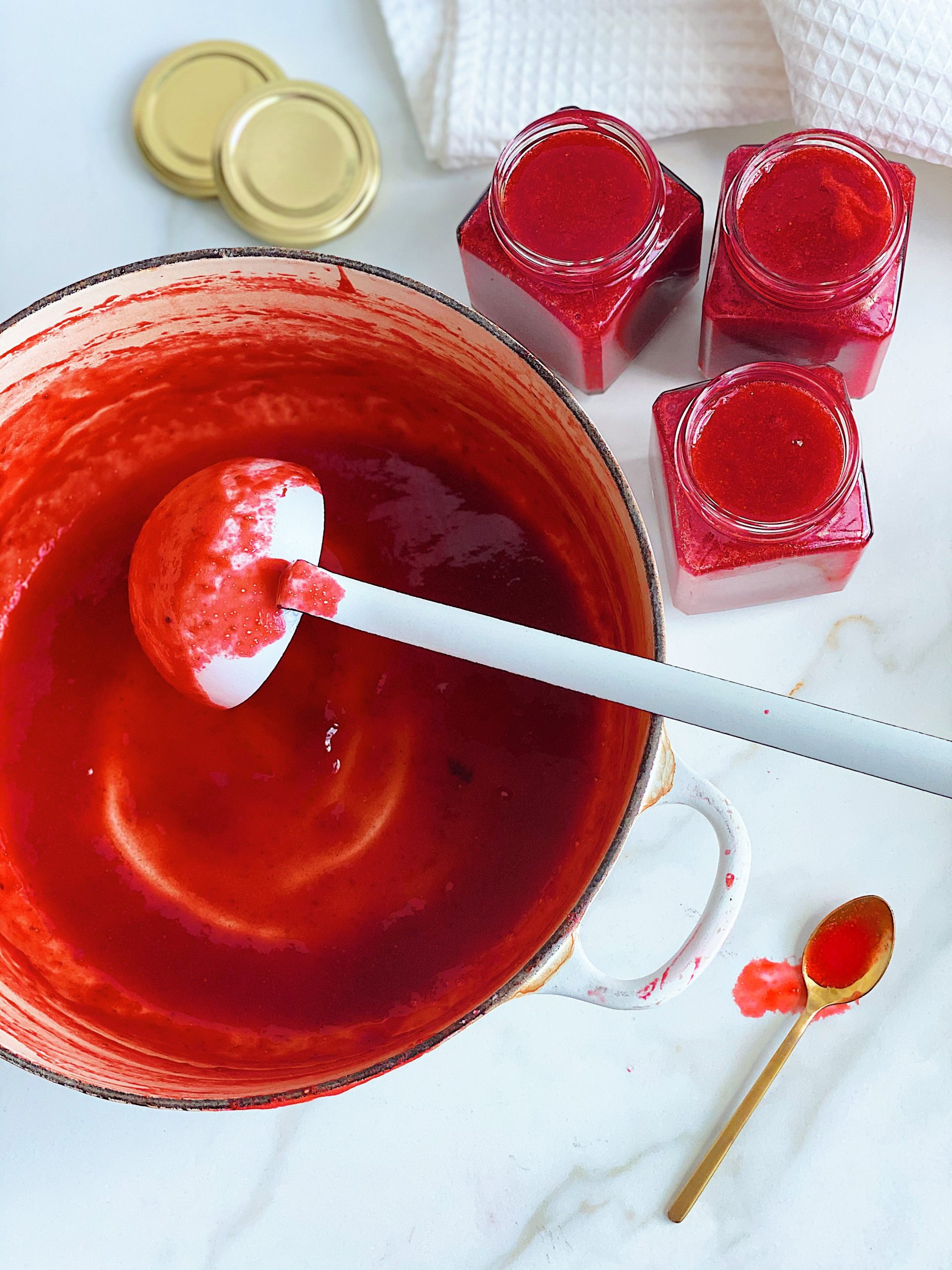1. V večjo posodo z debelim dnom damo očiščene jagode ter sladkor in kuhamo do mehkega.